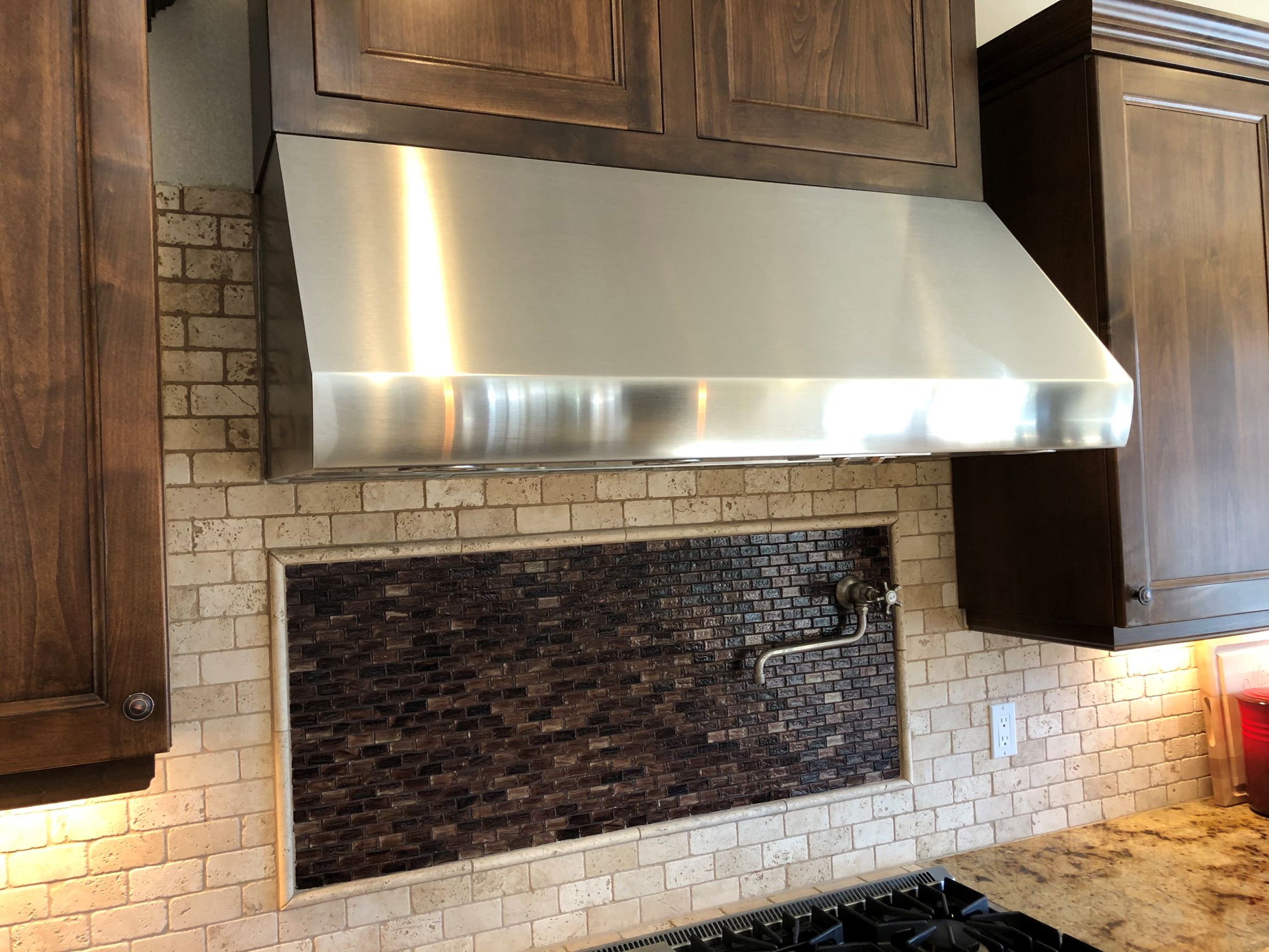 We do most types and styles of kitchen stove hoods. Island range hood, wall range hood, peninsula range hood, “pop-up” and down-drafting hoods.